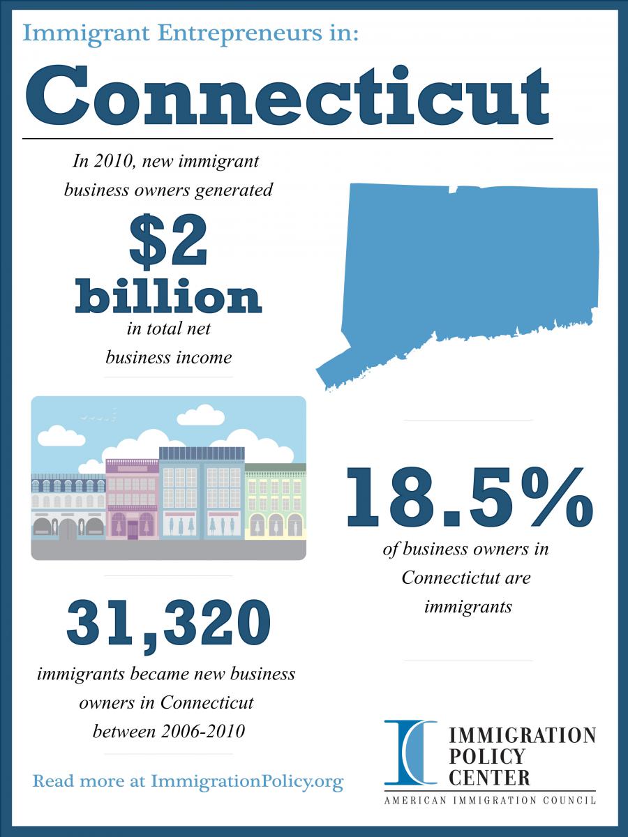 - From 2006 to 2010, there were 31,320 new immigrant business owners in Connecticut and in 2010, 18.5 percent of all business owners in Connecticut were foreign-born.