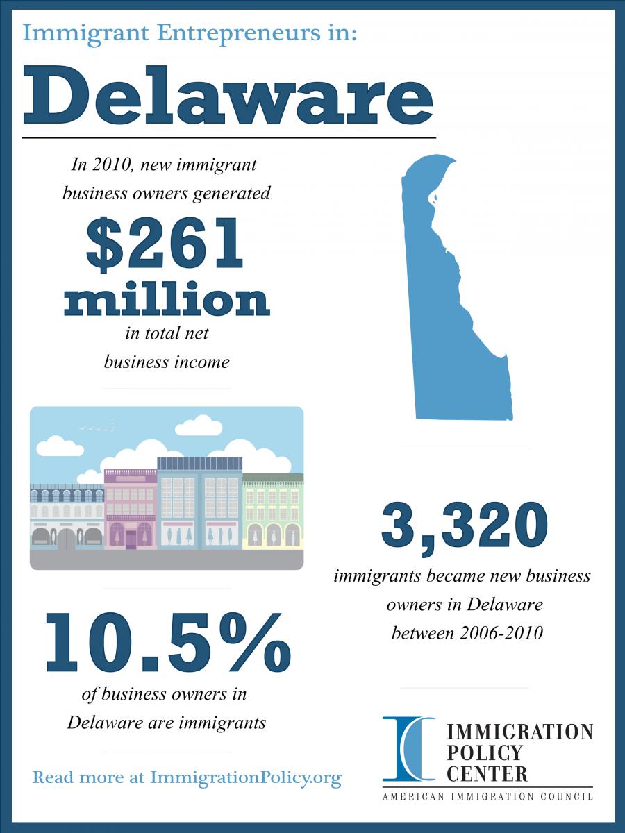 - From 2006 to 2010, there were 3,320 new immigrant business owners in Delaware and in 2010, 10.5 percent of all business owners in Delaware were foreign-born.