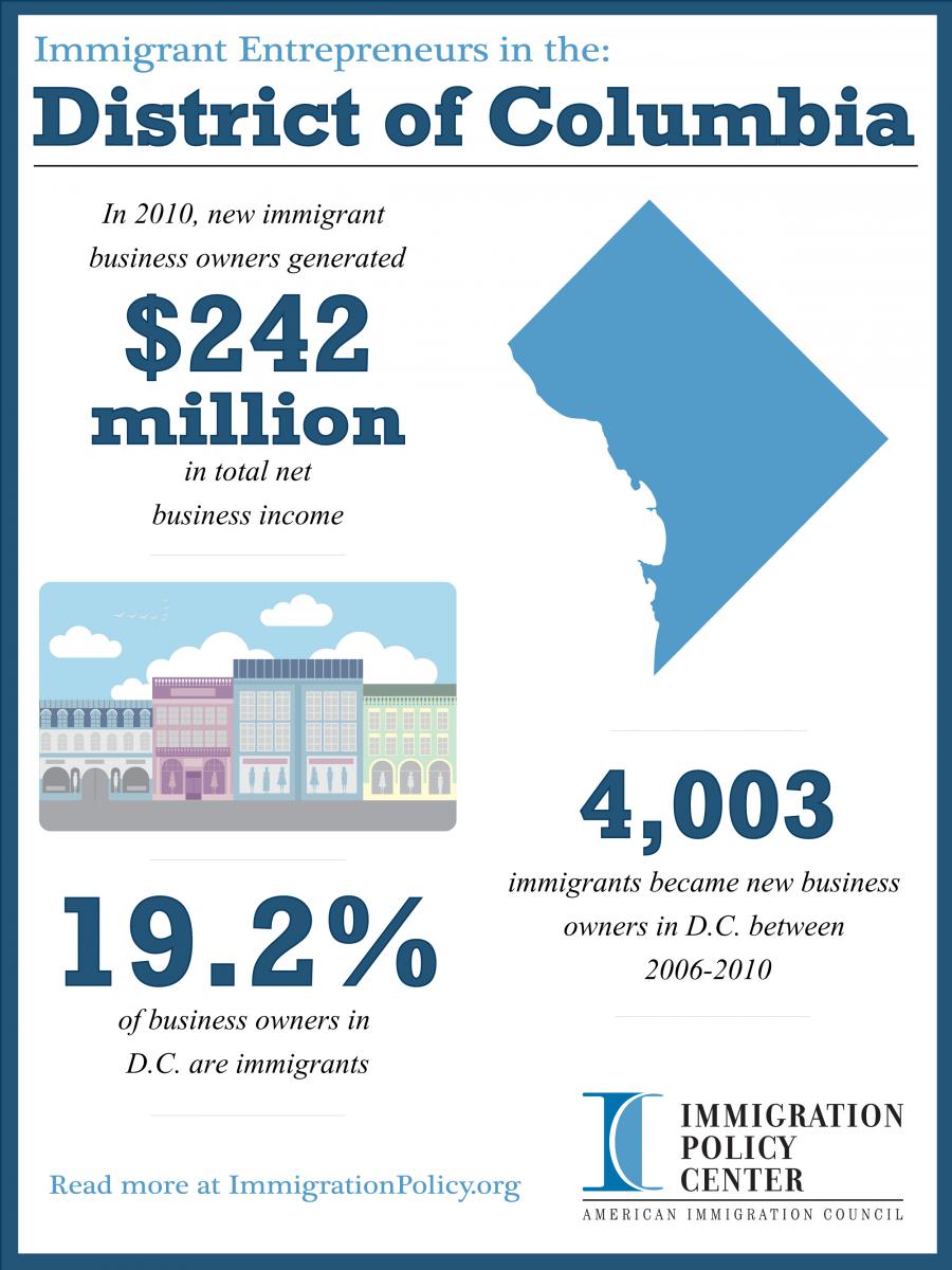 - From 2006 to 2010, there were 4,003 new immigrant business owners in District of Columbia, and in 2010, 19.2 percent of all business owners in the District of Columbia were foreign-born.