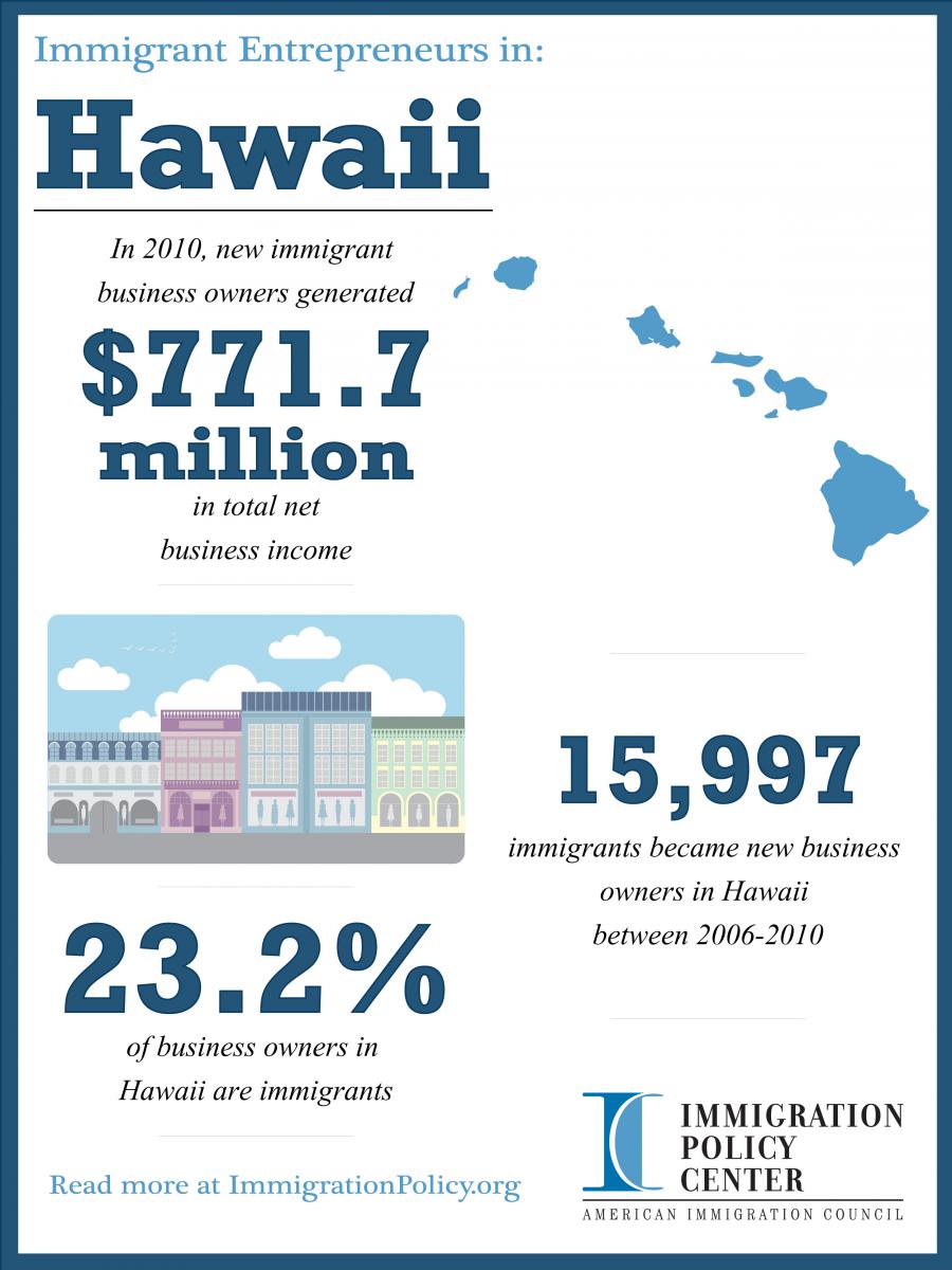 - From 2006 to 2010, there were 15,997 new immigrant business owners in Hawaii, and in 2010, 23.2 percent of all business owners in Hawaii were foreign-born.