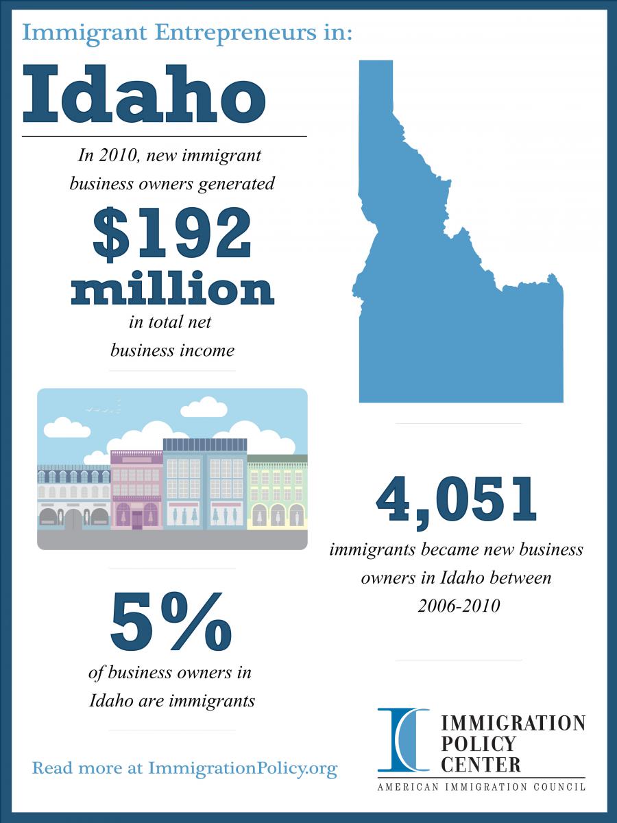- From 2006 to 2010, there were 4,051 new immigrant business owners in Idaho, and in 2010, 5 percent of all business owners in Idaho were foreign-born.
