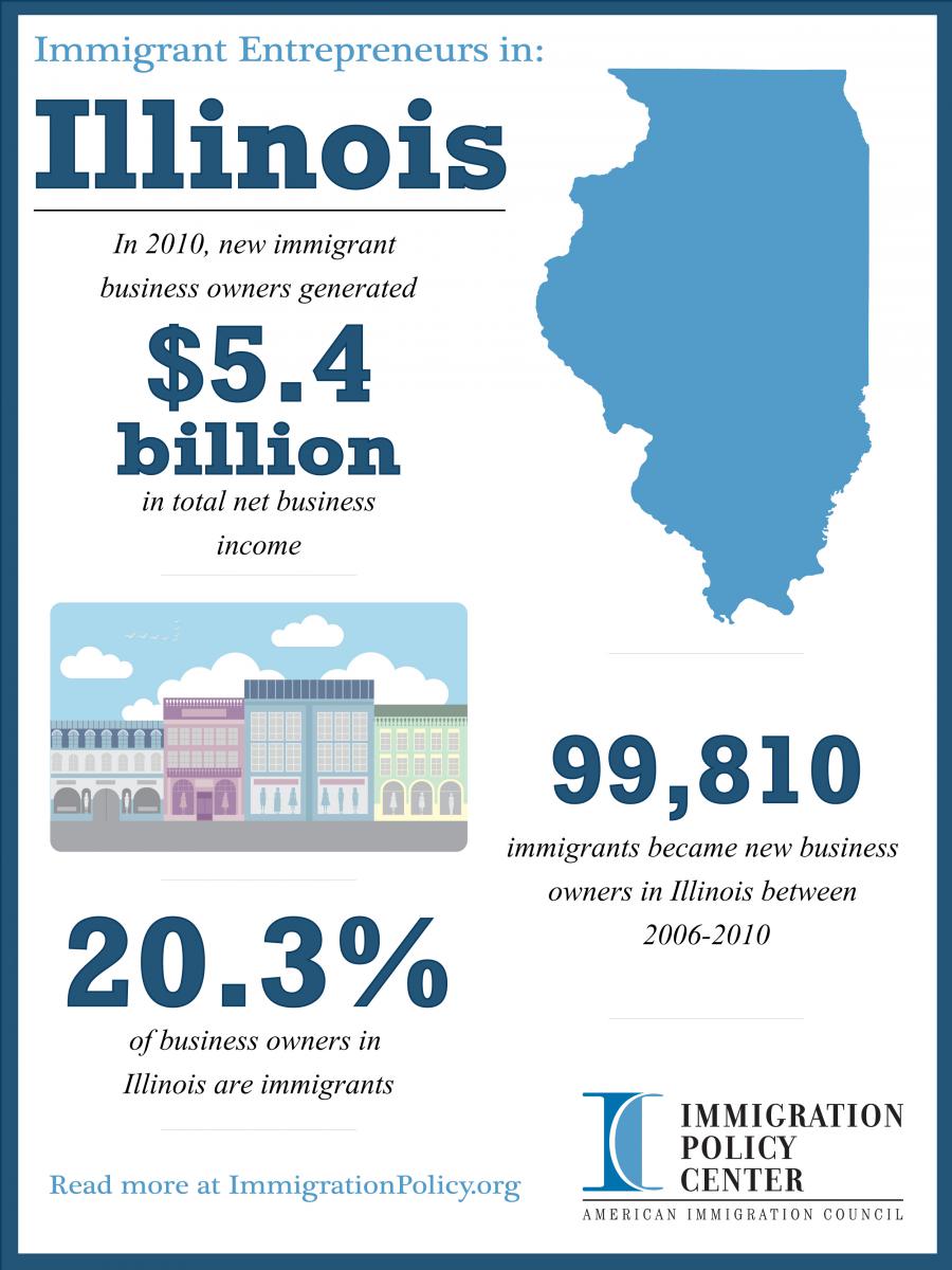 Immigrant entrepreneurs contribute significantly to Illinois’ economy.