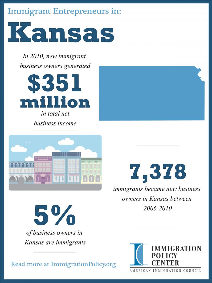 - Across Kansas and the broader Great Plains and Midwest region, local places recognize the importance of immigrant entrepreneurs in their communities. According to the Chicago Council of Global Affairs, “Public and private-sector groups across the region have launched business incubators for immigrant entrepreneurs, sponsored networking opportunities with local employers, and helped skilled immigrants translate their foreign credentials to maximize their economic potential in the United States.”