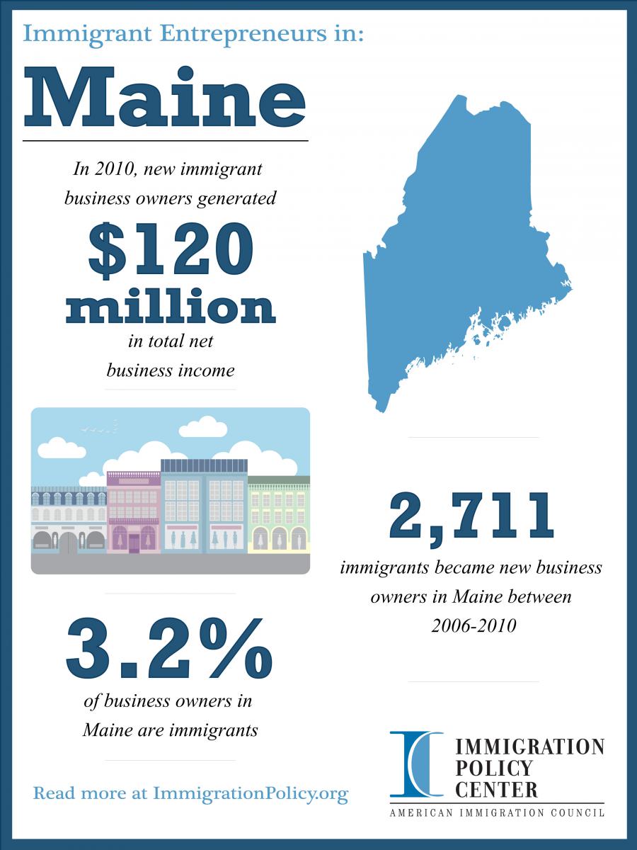 - From 2006 to 2010, there were 2,711 new immigrant business owners in Maine, and in 2010, 3.2 percent of all business owners in Maine were foreign-born.