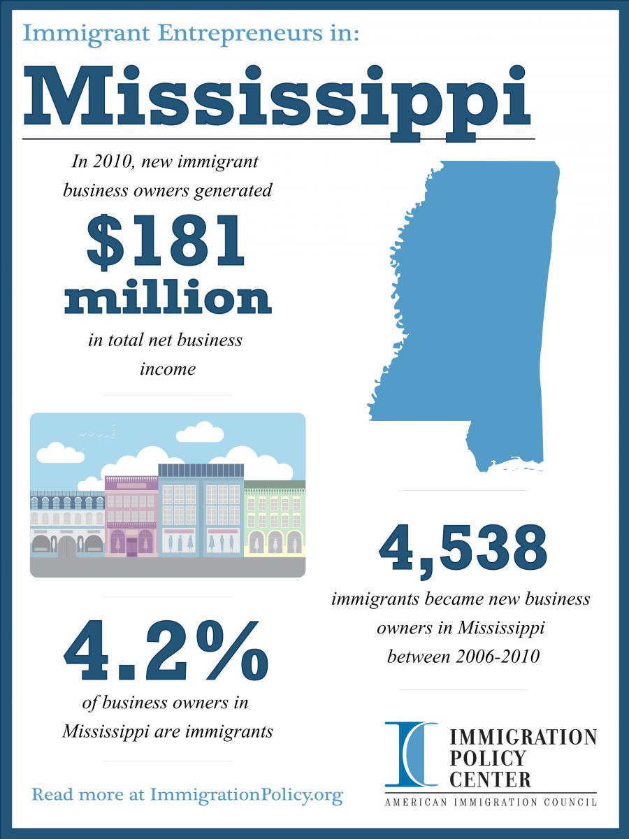 - From 2006 to 2010, there were 4,534 new immigrant business owners in Mississippi, and in 2010, 4.2 percent of all business owners in Mississippi were foreign-born.