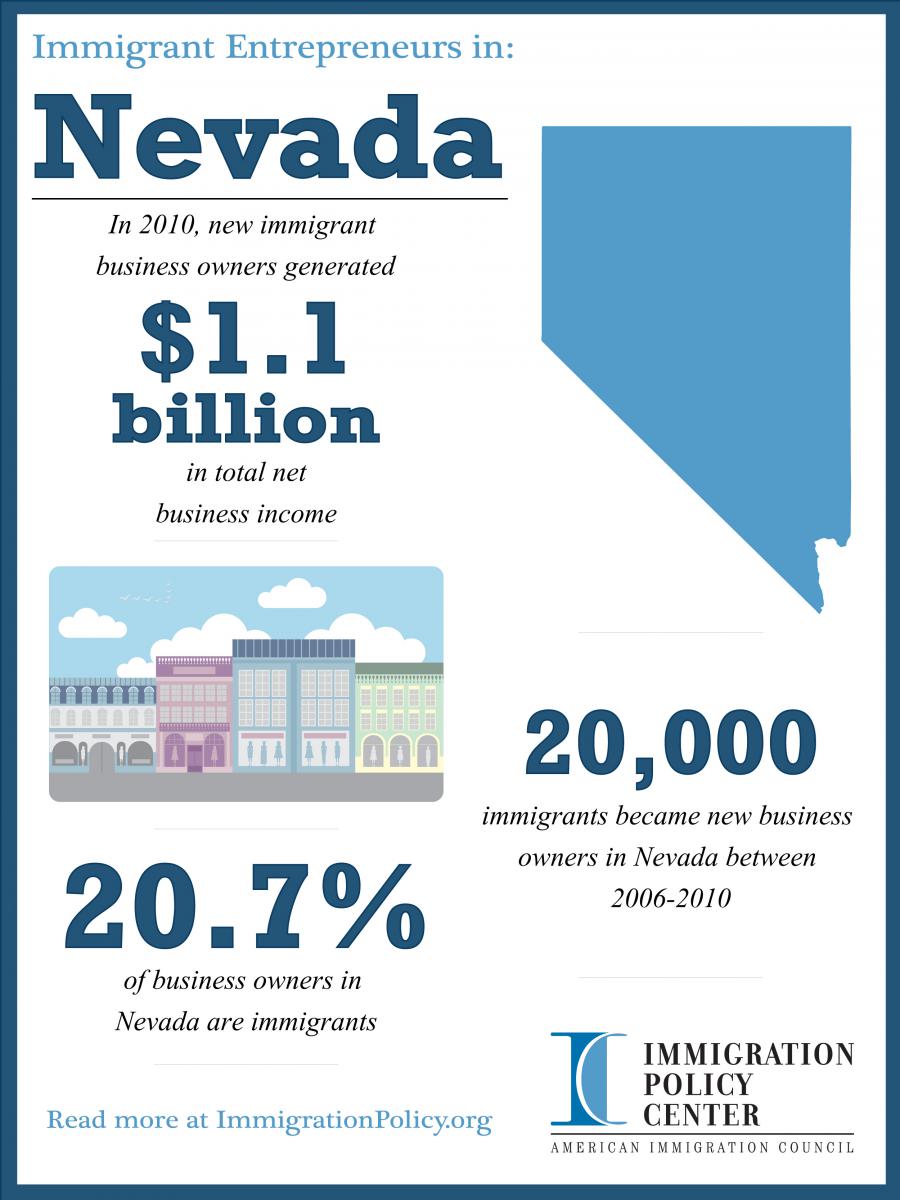 - From 2006 to 2010, there were 20,000 new immigrant business owners in Nevada and in 2010, 20.7 percent of all business owners in Nevada were foreign-born.