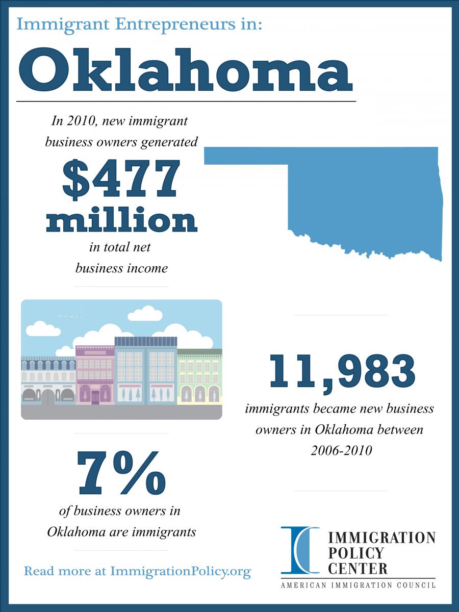 - From 2006 to 2010, there were 11,983 new immigrant business owners in Oklahoma, and in 2010, 7 percent of all business owners in Oklahoma were foreign-born.