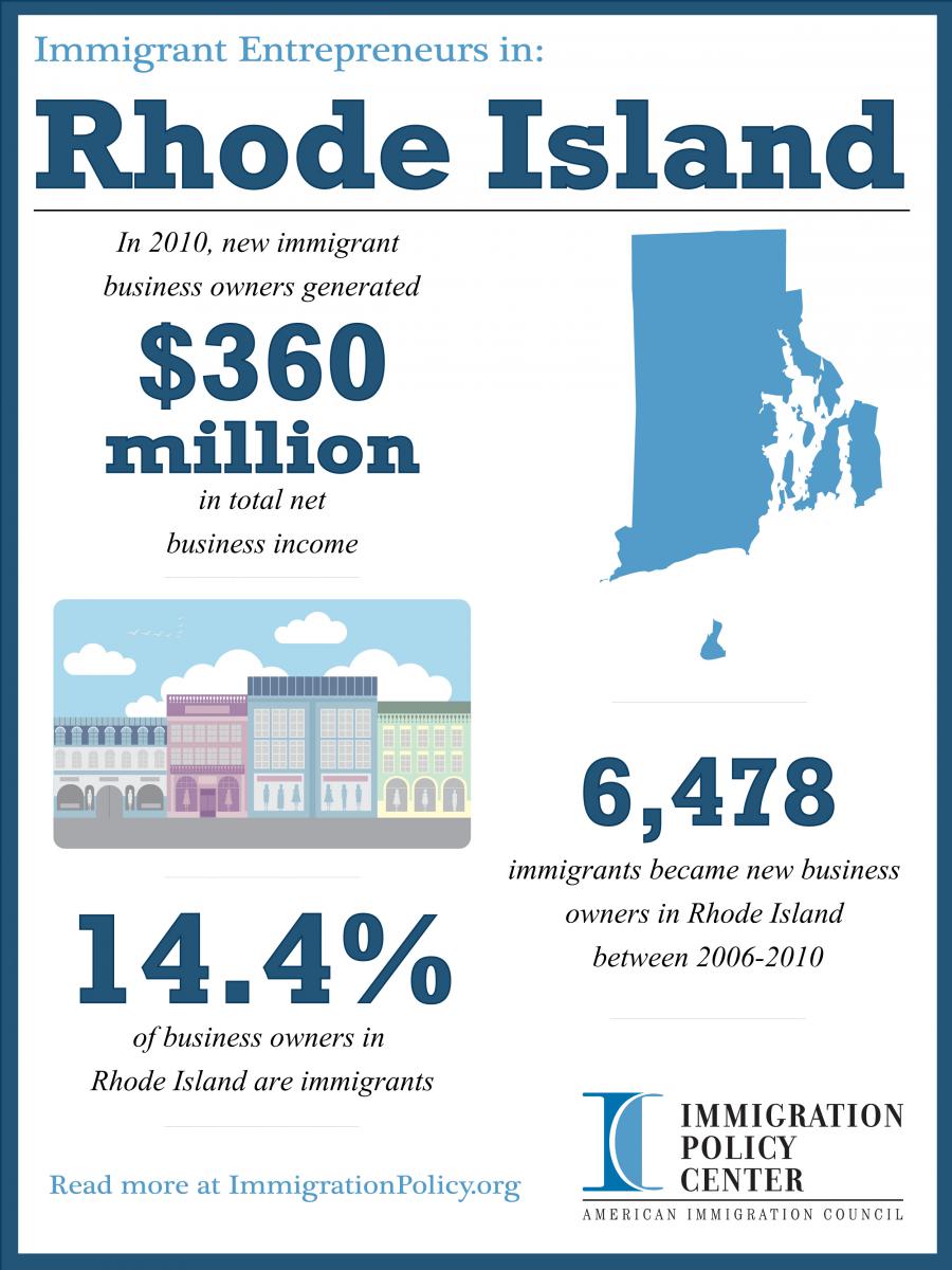 • From 2006 to 2010, there were 6,478 new immigrant business owners in Rhode Island, and in 2010, 14.4 percent of all business owners in Rhode Island were foreign-born.