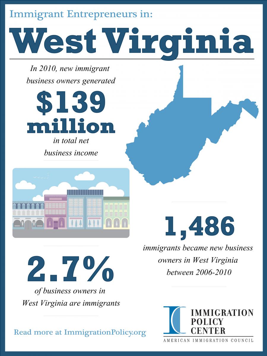 - From 2006 to 2010, there were 1,486 new immigrant business owners in West Virginia, and in 2010, 2.7 percent of all business owners in West Virginia were foreign-born.