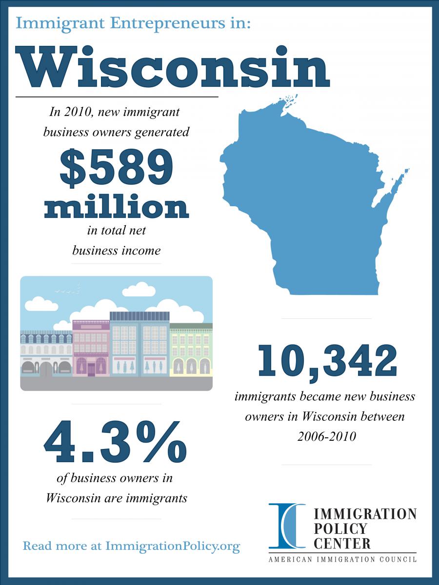 - Across Wisconsin and the broader Midwest, local places recognize the importance of immigrant entrepreneurs in their communities. According to the Chicago Council of Global Affairs, “Public and private-sector groups across the region have launched business incubators for immigrant entrepreneurs, sponsored networking opportunities with local employers, and helped skilled immigrants translate their foreign credentials to maximize their economic potential in the United States.”