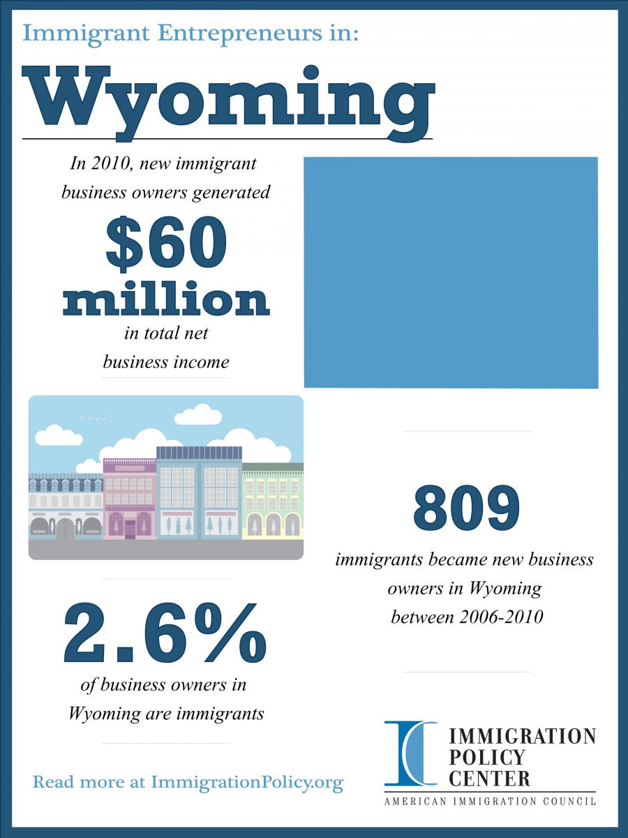 - From 2006 to 2010, there were 809 new immigrant business owners in Wyoming, and in 2010, 2.6 percent of all business owners in Wyoming were foreign-born.