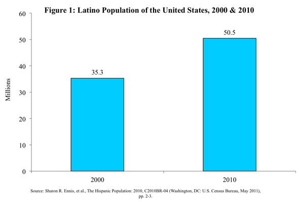 - Between 2000 and 2010, the number of people in the United States who identified themselves as Latino grew from 35.3 million to 50.5 million (an increase of 43%) {Figure 1}.
